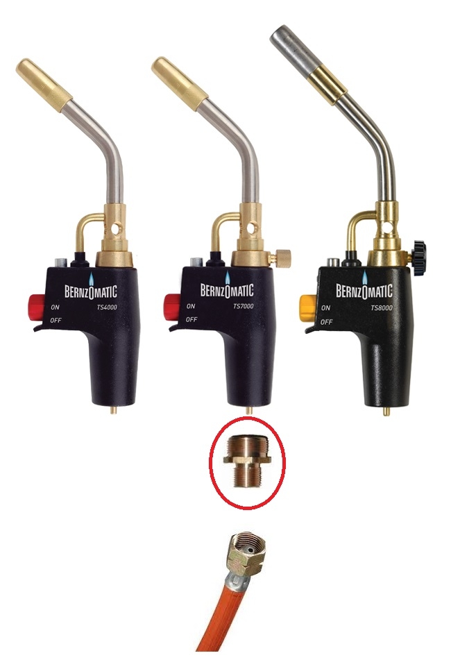 Adaptér k připojení amerických plynových zařízení a hořáků Bernzomatic TS 8000, TS 7000, TS757, TS 4000, TS 3000, BZ4500HS, JT539T, JTH7, JT680, UL2317, Super Fire (Rothenberger) k plynové hadici s koncovkou G 3/8" LH. Materiál mosaz. Na vidlicový klíč 30mm. Gumové těsněnie je součástí balení.