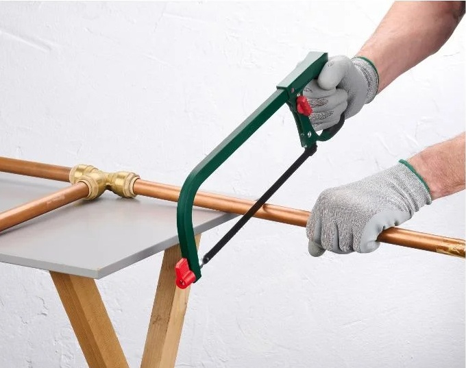Ergonomický kovový rám pro vyšší napnutí listu a prevenci jeho uvolnění při pádu pily. Rychloupínací funkce – snadná výměna mezi pilou na železo, tažnou pilou a ruční pilou (ocaskou). Měkké rukojeti umožňující pohodlné sevření pily bez nebezpečí prokluzu. Rám vyrobený z oceli s práškovanou povrchovou úpravou. 6dílná sada:1x rukojeť pily, 1x madlo, 1x bimetalový pilový list (24 zubů na palec) pro řezání kovu, celková délka: cca 315 mm. 1x ocelový pilový list (18 zubů na palec) pro řezání plastu, pilový list otočný o 45°, celková délka: cca 315 mm. 1x tažná pila (ocaska) na řezání větví a větviček (tažný pilový list 7 zubů na palec), celková délka: cca 280 mm. 1x ruční pila (ocaska) na řezání dřeva (pilový list 7 zubů na palec), celková délka: cca 330 mm