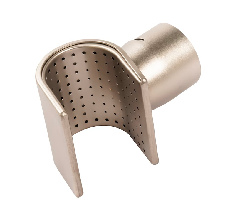 Leister tryska reflektorová děrovaná (ø 31.5) 50 x 34 mm 75° zahnutá, pro Triac S, ST, AT, PID. Tato reflektorová tryska je vhodná pro širokou škálu smršťovacích prací včetně výroby kabelů.Připojení trysky ø 31,5 mm. Délka reflektoru (A) 50 mm. Šířka reflektoru (B) 34 mm. Úhel (E) 75°