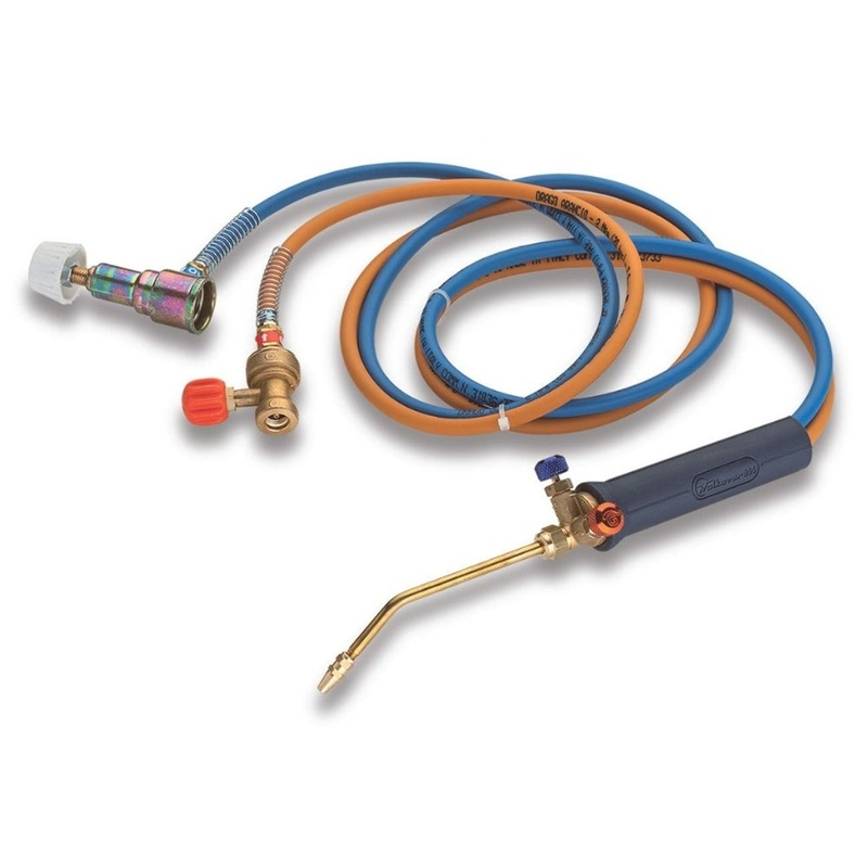 Profesionální mini autogenní souprava Kemper v praktickém stojanu je vhodná pro svařování, pájení či dělení materiálu do 5mm tloušťky oceli (dle trysky). Sada obsahuje: Redukční ventil pro kyslík: 0-200 bar / závit M24 x 2. Redukční ventil pro technické plyny: 0-6 bar / závit EU 7/16". Ventily proti zpětnému zahoření tzv. zpětné ventily. Délka hadic 1,5 m. Hořák s rukojetí a tryskou 0,5 mm-40 l/h, 1 ks náhradní trysky 0,65 mm-50 l/h, 1 ks ochranných svářečských brýlí, naplněnou (200 l) tlakovou, opětovně plnitelnou láhev O2 (kyslík 200 bar) obj.č. 585H400, technický směsný plyn v kartuši Novacet obj.č. 580 (600 ml). Rozměr balení: 40x24 cm Hmotnost produktu včetně plných plynových lahví: cca 7 kg