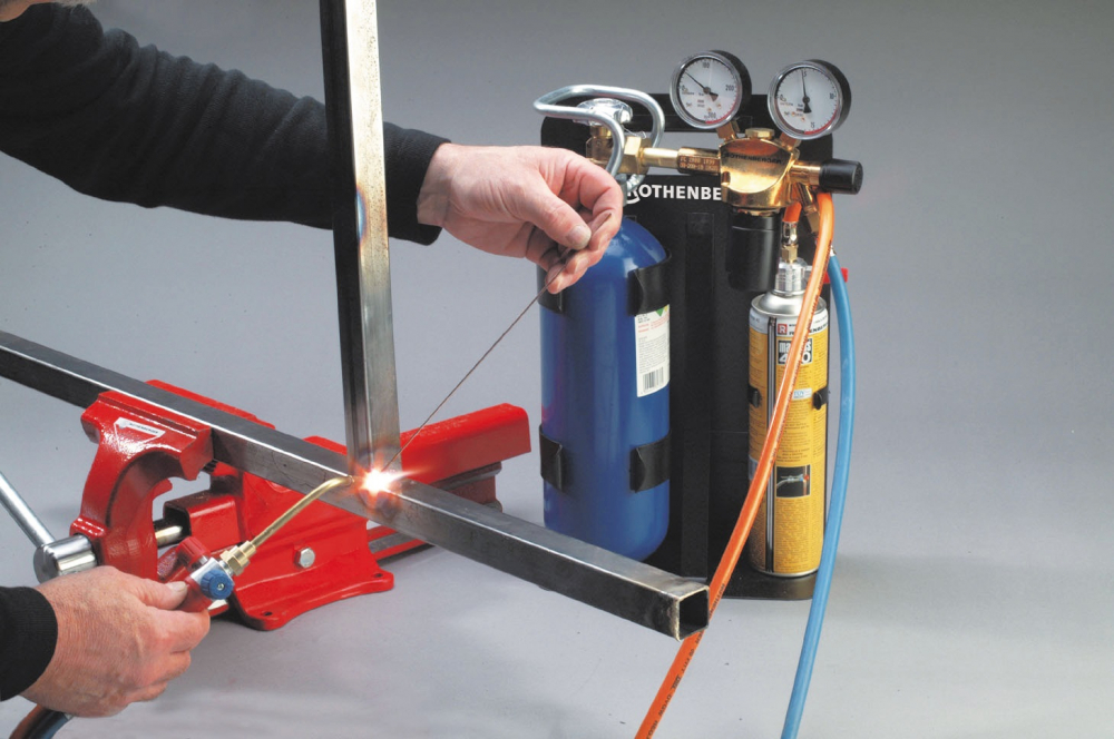 Profi verze s 3m dlouhou hadicovou sadou. Profesionální autogenní pájecí a svařovací přístroj pro teplotu plamene do 3100°C v mini provedení. Pro tvrdé pájení mědi, mosazi, hliníku, svářovaní železa, oceli, plechů, trubek a neželezných kovů a mnoho dalších oblastí použití. Součástí dodávky jsou i mikrotrysky pro precizní a jemné práce. Přibalené bezpečnostní pojistky spolehlivě zabraňují zpětným zášlehům.19-ti dílná sada (obj. č. 35780X) obsahuje: rukojeť s jemnými regulačními ventily (obj. č. 35580), plynovou kartuši Maxigas 400, 600ml (obj. č. 35570), plnou a opakovaně plnitelnou kyslíkovou láhev 2,0 l / 200bar (obj. č. 35635), jemný plynový regulační ventil (obj. č. 1300002024), regulační ventil tlaku kyslíku 10 bar (obj. č. 35634), 3m dlouhá hadicová sada z kvalitní gumy (obj. č. 35785), protizášlehová kyslíková pojistka (obj. č. 1000000633), protizášlehová plynová pojistka (obj. č. 35691), trysková směšovací trubka s převlečnou maticí (obj. č. 263005500), vysoce výkonné trysky 1,5 mm (obj. č. 263005600) a 2,0 mm (obj. č. 263005400), mikrotrysky 0,3 mm (obj. č. 35712), 0,5 mm (obj. č. 35696), 0,7 mm (obj. č. 35713), adaptér mikrotrysek (obj. č. 35585), ochranné svářečské brýle A5 (obj. č. 35621), bezpečnostní zapalovač (obj. č. 32077), montážní pozinkovaný klíč (obj. č. 35738), přepravní rám (obj. č. 35727). Prostorově úsporné uložení do každého servisního vozu nebo dílny! Rozměry: V x Š x H v cm (49x27x15). Hmotnost 10,8kg. V kartonu