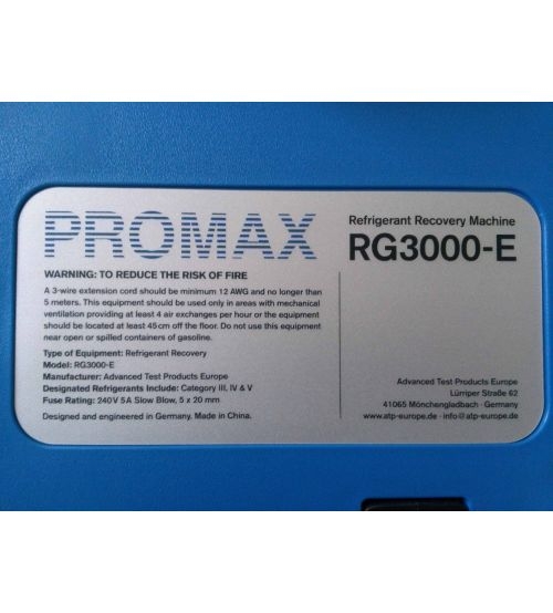 Společnost Promax uvádí na trh odsávací zařízení RG3000-E, nejlehčí zařízení na trhu pro odsávání chladiva. S pouhými 8 kg je lehčí než jakékoliv jiné odsávačky a mnoho vakuových čerpadel! Malá velikost nemá vliv na výkon - zařízení udržuje krok s velkými bratry MiniMax a RG5410A - likviduje jak plyn, tak tekutinu s výkonem na světové úrovni. Vhodné pro všechny běžné chladiva CFC, HCFC a HFC, včetně chladiva R410A a A2L jako např. R32 nebo R1234yf. Bezpečnostní omezovač tlaku s funkcí automatického vynulování. Jednoduché ovládání dvou ventilů. Snadno čitelný manometr. Bezolejový kompresor pro likvidaci kapalných a plynných chladiv, integrovaný filtr nečistot je součástí balení. Odlučovač oleje není součástí vybavení. Odsávačka je určena pro čerpání hořlavého materiálu. Plastová skříň, která je chráněna proti korozi. Vysoce účinný ventilátor a kondenzátor. K dispozici s napájením 230V i 115V, 50Hz včetně 1.8m síťového kabelu s univerzálním připojením IEC. Obsahem 032 filtr / sušičku a 10" hadici s ¼" SAE připojením pro lepší bezpečnost. TÜV, CE, UL a ARI certifikát. Přihlášení k několika mezinárodním patentům. Rozměry: 310 x 235 x 175 mm. Čistá hmotnost 9,8 kg. Technické údaje: Napájecí napětí: 230 V 50 Hz Výkon: 250 W. Rozměry (V x Š x H): 310 x 235 x 175 mm. Hmotnost: 8 kg. Průtoková rychlost: (podle UL ARI-740-98 *): kapalina: až 58,25 kg/h, plyn: do 8,18 kg/h, metoda "Push & Pull": až 229,13 kg/h. Vypnutí: 38,5 bar