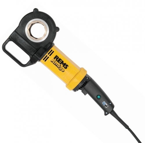 REMS Amigo - nejmenší, nejlehší, nejsilnější a nejrychlejší. Výkonný, ruční elektrický nástroj pro řezání závitů.Lze jej používat kdekoli, bez svěráku. Ideální pro opravy, renovaci, stavby. Elektrická závítnice s rychlovyměnitelnýmí závitořeznýmí hlavami. Pro trubkové závíty 1/8-5/4˝, 16-40 mm, šroubové závity 6-30 mm, 1/4-1˝. Pro pravé í levé závity. Pohonná jednotka s převody nevyžadujícímí údržbu, univerzální motor s vysokou tažnou sílou 230 V, 50-60 Hz, 1200 W, bezpečnostní spínač, nárůst výkonu díky automatíckému nastavování uhlikových kartáčů při změně směru otáčeni. Špičkový příkon až 1800 W. Pravý a levý běh, ochrana protí přetíženi. V kartonu.