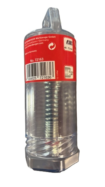 Rothenberger standardní nástroj k provrtání textilních a papírových ucpávek s maximální flexibilitou i v záhybech a obloucích. Pracovní rozsah od 40 do 75 mm. Maximální vnější průměr nástroje: 28 mm, délka 115mm. Hmotnost:70 g. Spojka: 16mm (5/8")
