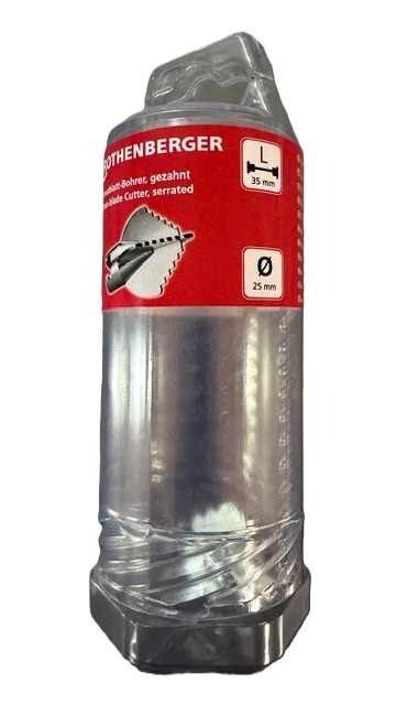 Rothenberger speciální nástroj k provrtání zatvrdlých nečistot, sádry, malty a jiných materiálů. Spojka 16 mm, průměr vrtáku 25 mm, délka 35 mm, rozsah práce v potrubí 50-75 mm.